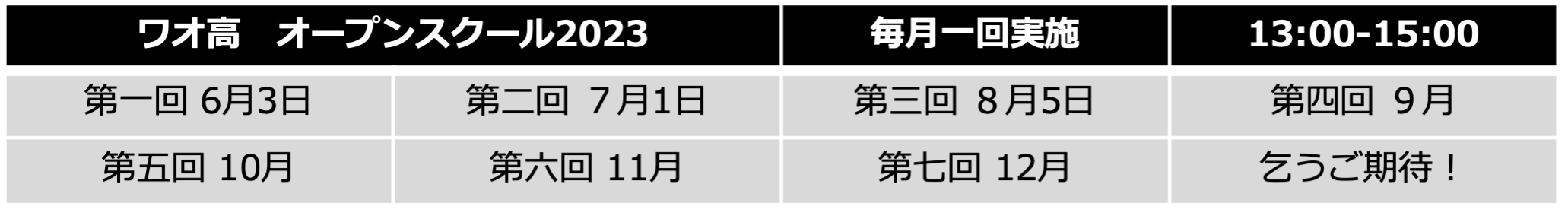 ワオ高 オープンスクール2023 第一回 6月3日 13:00-15:00 (申込期限 6/2(金)15:00)