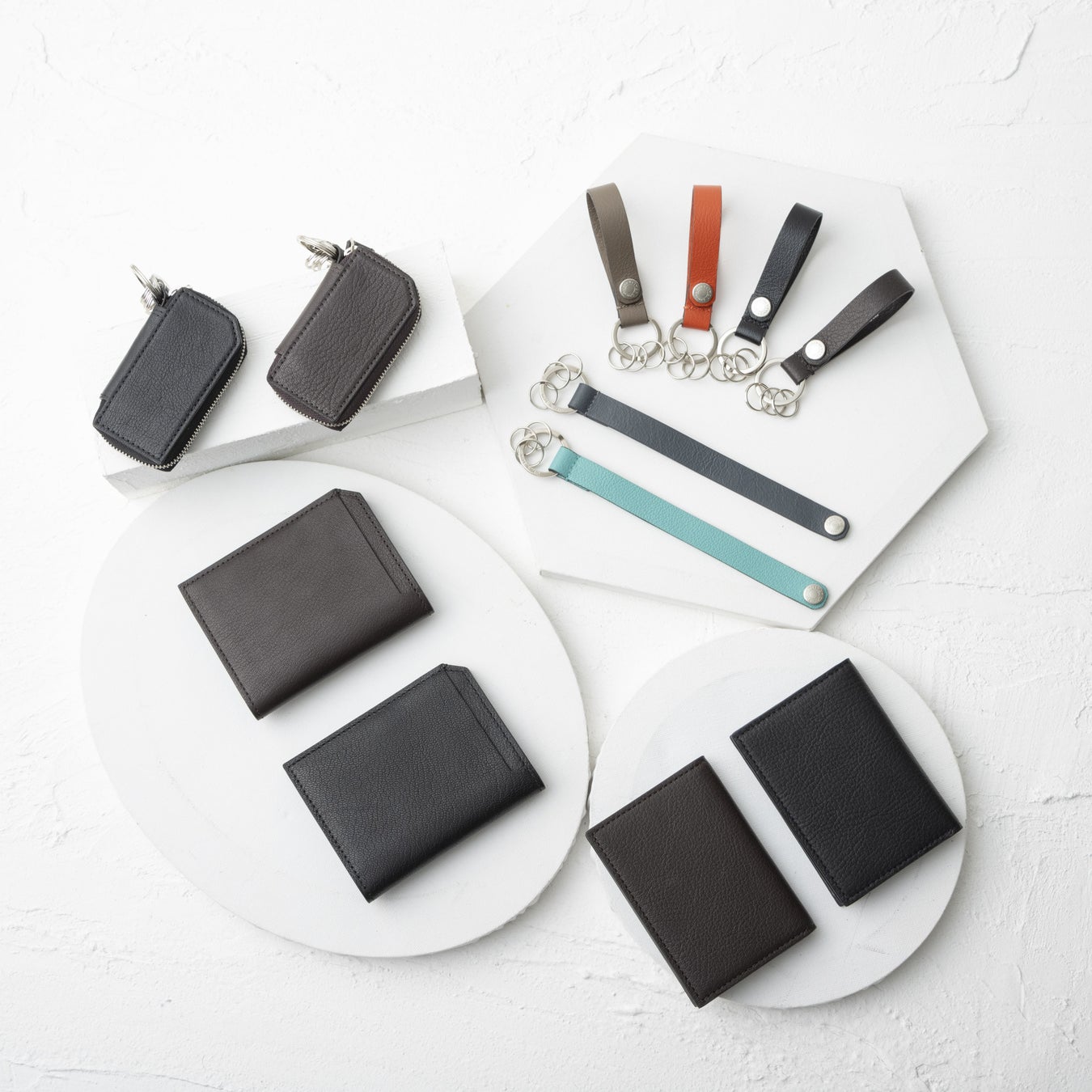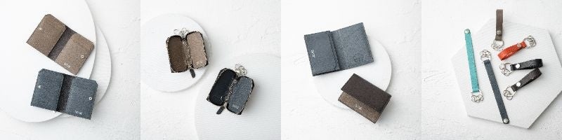 新素材で展開するモデルは、スリム設計ながら7枚のカードが収納できる点が人気の「スマートカードウォレット」、スマートキーをコンパクトに収納することができるの「スマートキーケース」、3つのフリーポケットを装備したボックス型の「名刺入れ」、ちょっとしたギフトに最適な「リボンキーホルダー」の計4モデルを展開。