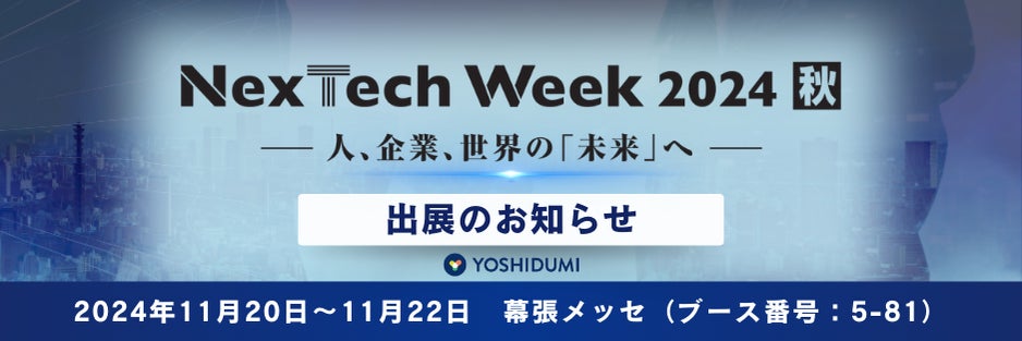 吉積情報株式会社(本社:東京都千代田区、代表取締役社長 秋田晴通)は、11⽉20⽇(水)- 11⽉22⽇(金)に幕張メッセで開催される最新AI技術の専門展示会、NexTech Week 第5回 AI・人工知能EXPO【秋】に出展することをお知らせいたします。