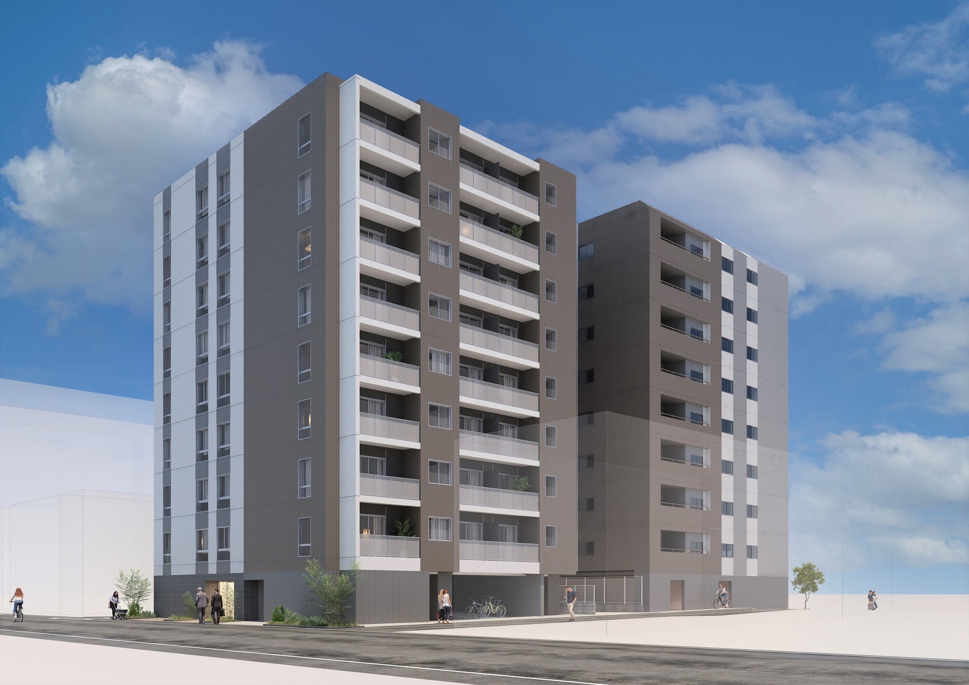 「(仮称)ASMACI MAISON墨田区緑Ⅰ」(左)・「(仮称)ASMACI MAISON墨田区緑Ⅱ」(右)の完成イメージ