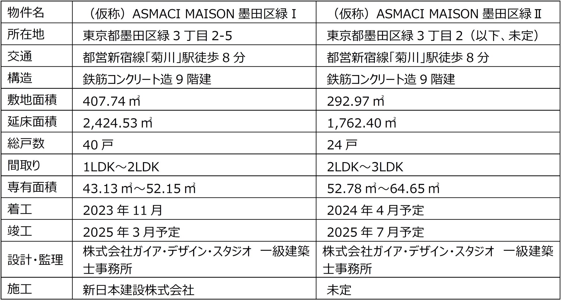 「(仮称)ASMACI MAISON墨田区緑Ⅰ・Ⅱ」の概要