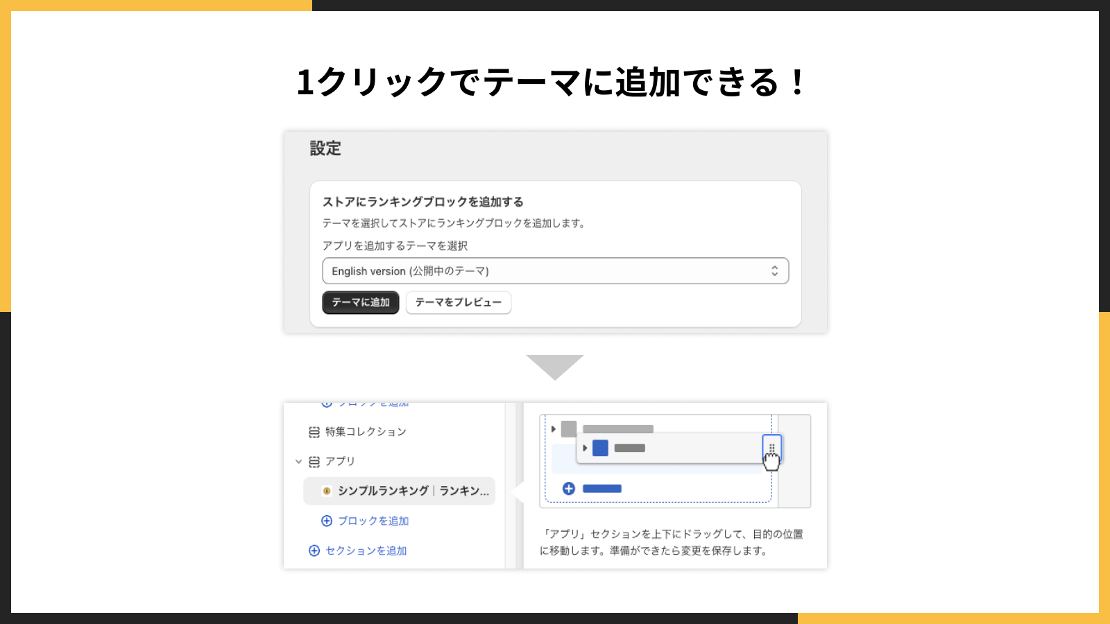 「シンプルランキング表示|お手軽ベストセラー」は、Shopifyストアにノーコードでランキングを表示できるアプリです。