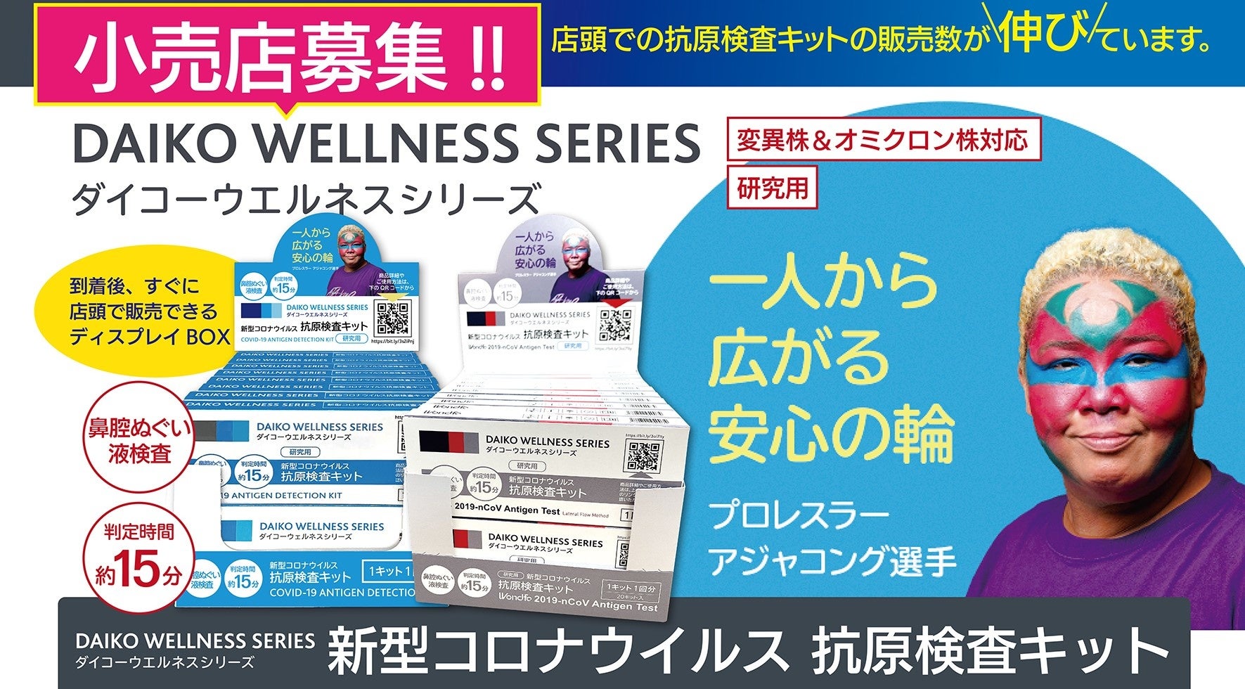 非接触受付システム QR発行デジタル入場パス搭載「ウエルネスくん」|ダイコーウエルネスシリーズ 研究用 抗原検査キット| 医療と介護の総合展へ出展のお知らせ