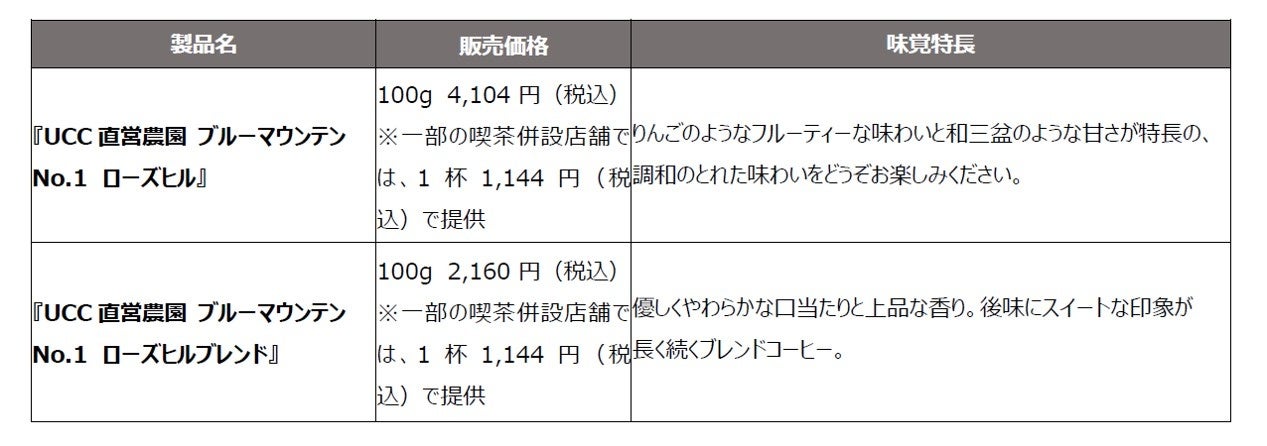 UCC上島珈琲株式会社(本社/神戸市、資本金/10 億円、社長/朝田文彦)は、「UCCブルーマウンテンコーヒー直営農園」のローズヒルエリアで栽培された、最高等級豆※を使用した『ブルーマウンテンNo.1 ローズヒル』と『ブルーマウンテンNo.1 ローズヒルブレンド』を、UCCのコーヒー豆の挽き売り業態「UCCカフェメルカード」・「カフェノバール」22店舗にて、2022年12月1日(木)より数量限定で販売します。