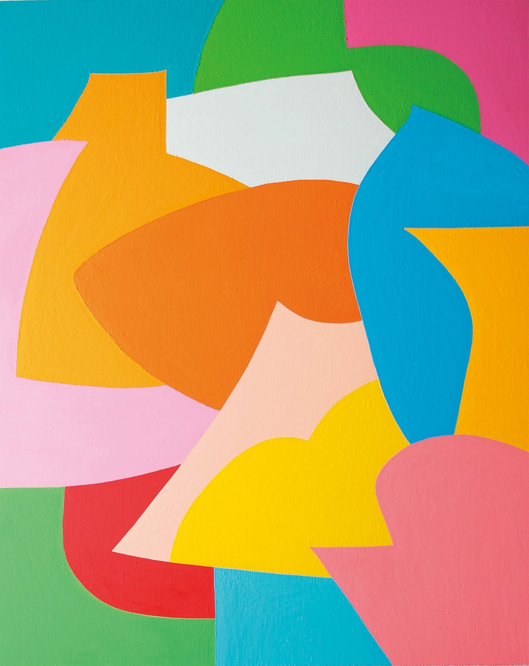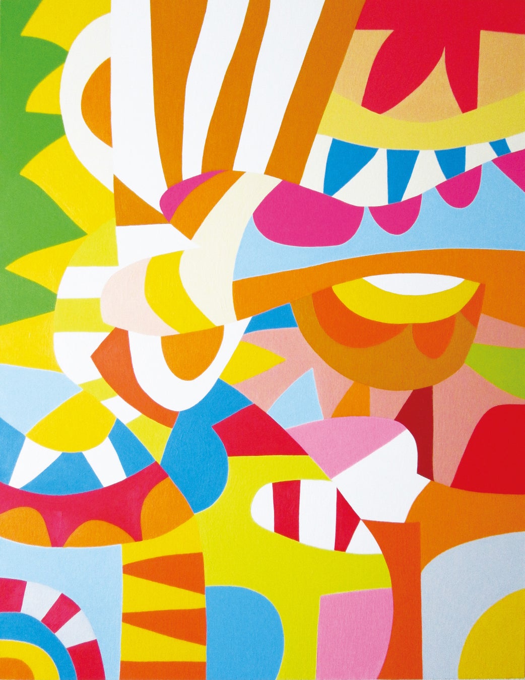 ヒラヌマは山本寛斎のパリ・東京コレクションの選曲、演出助手を経て「本物の」美術と触れ合うべく1990年フランス・パリへ渡りました。以来、画業30年を越え抽象がかった具象作品を描いてきたヒラヌマが「遊ぶ」ようにして色を繋ぎ合わせたシリーズ作品「CONTEMPORARY MUSIC」。