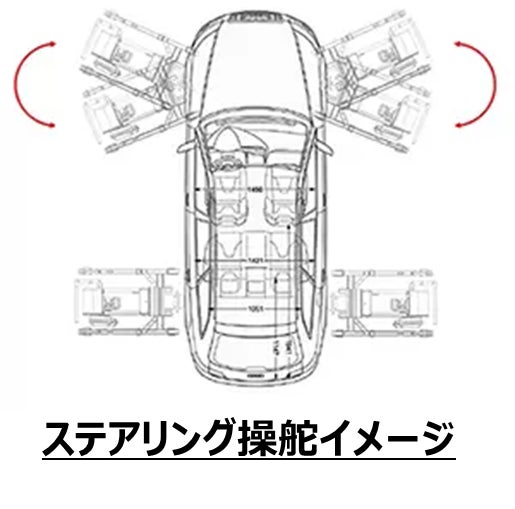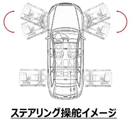 台車構造をとっているため、従来のシャシダイナモでは実現できなかったステアリングの操舵を±45°までの範囲で行うことができます。