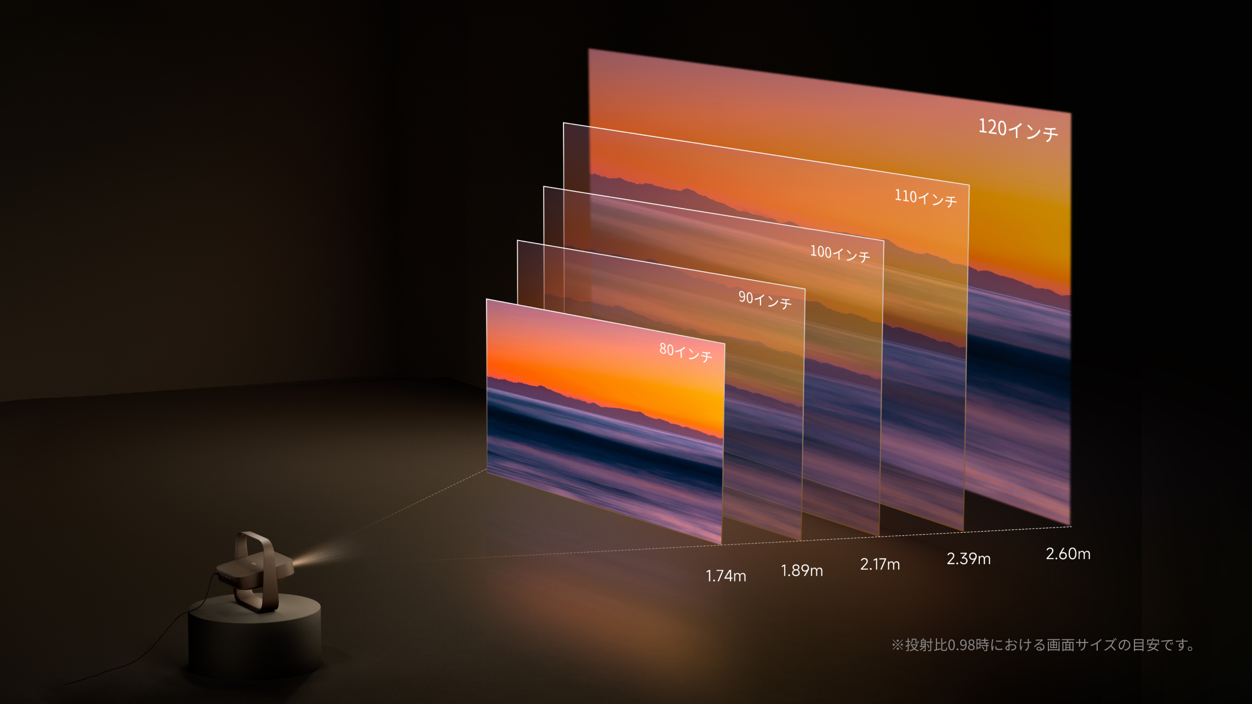 限られた空間でも画質を犠牲にすることなく、大画面体験を楽しめます。