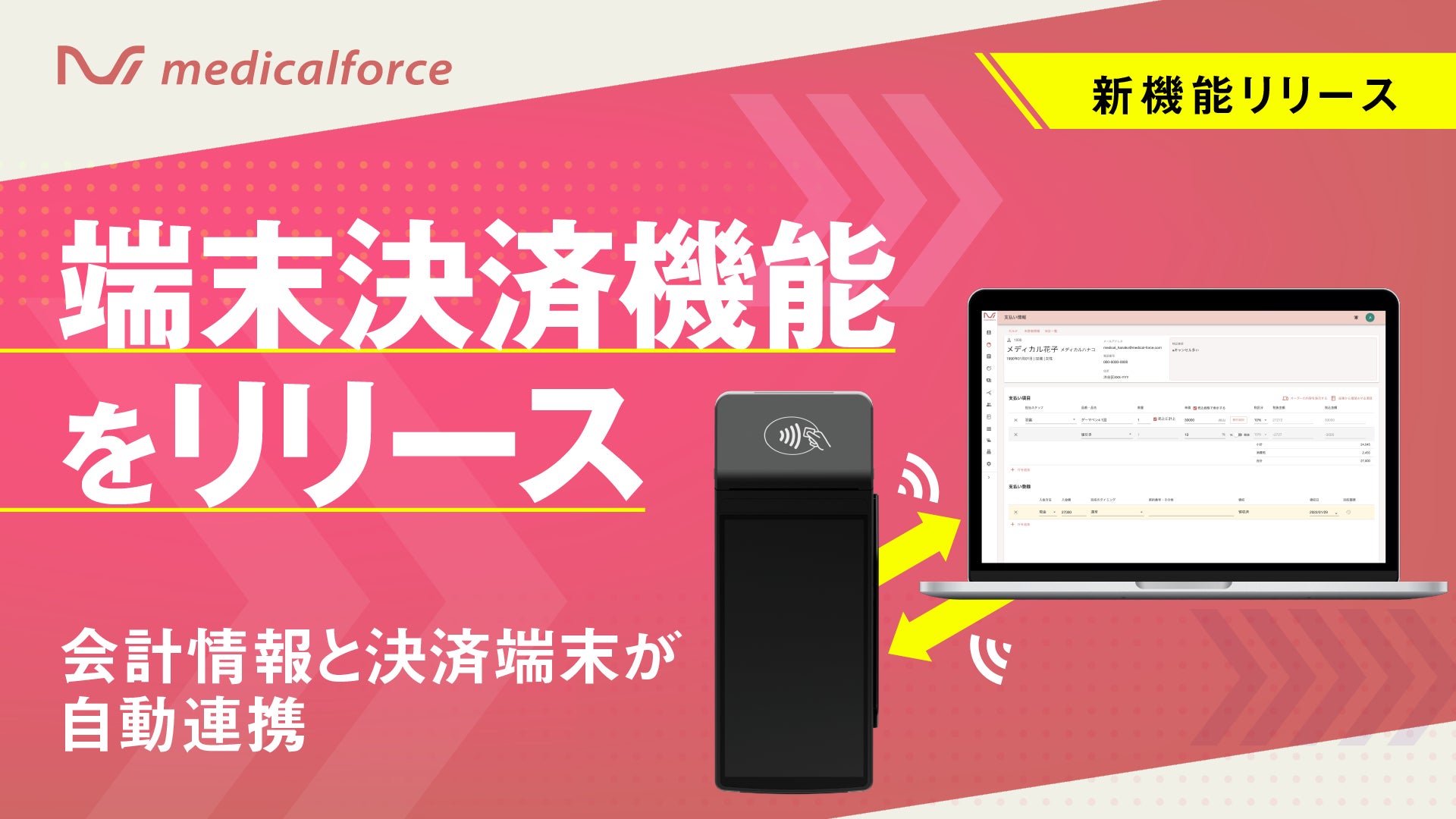 クリニック向けのオールインワンSaaS「medicalforce」を提供する株式会社メディカルフォース(本社:東京都品川区、代表取締役CEO:畠中 翔一 以下、メディカルフォース)は、「medicalforce」上の会計情報と連携し、店舗での対面決済を自動化する新機能「端末決済」をリリースしたことをお知らせいたします。