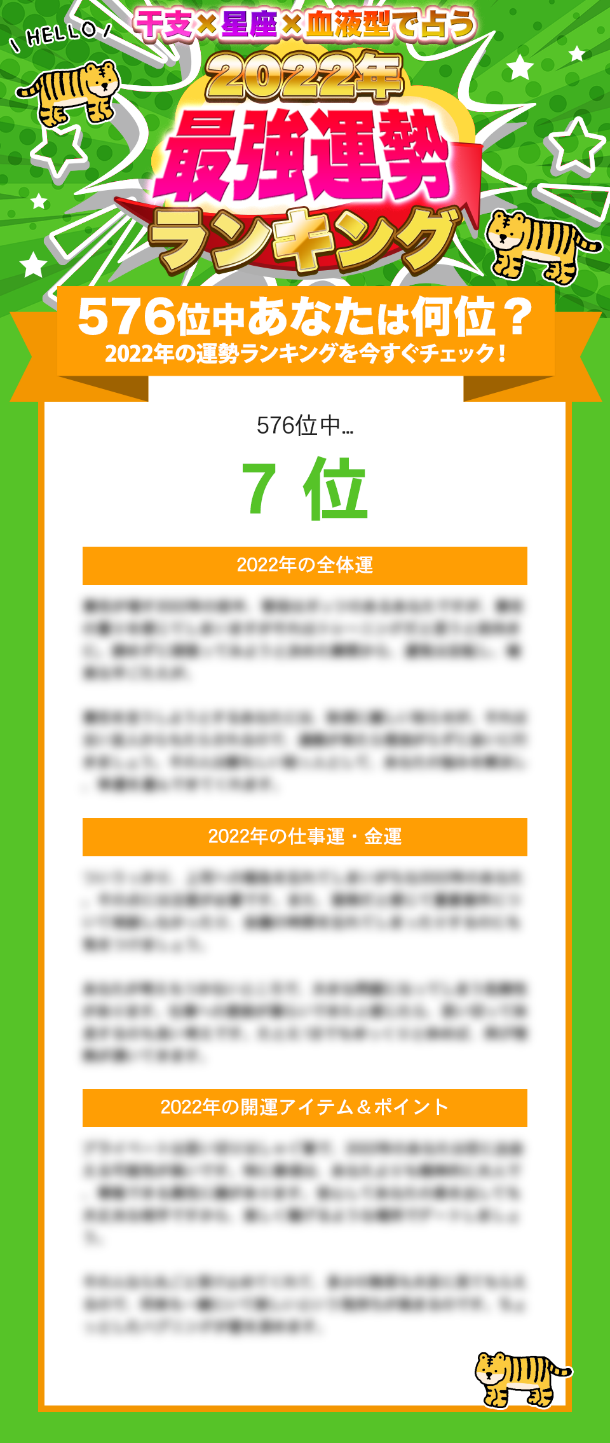 ・コンテンツ名称:あなたの運勢は何位?干支×星座×血液型で占う2022年運勢ランキング