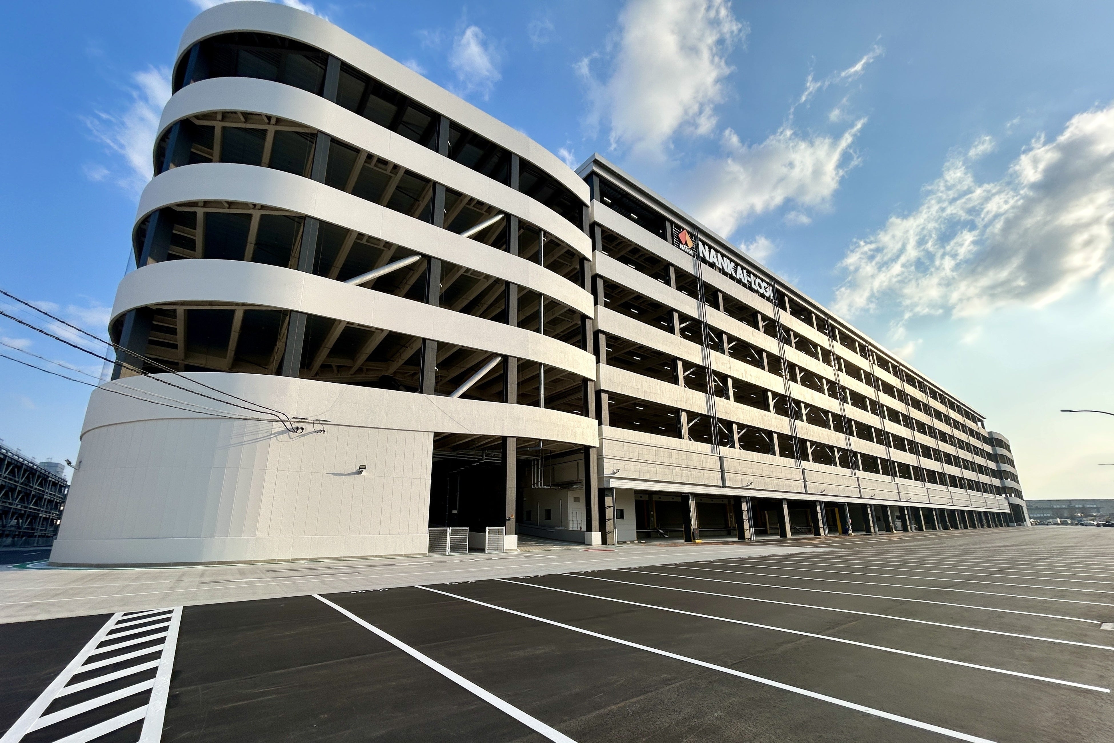7号棟は、「北大阪トラックターミナル1号棟」「大阪府食品流通センターE棟」に続く北大阪流通センター再開発の第3弾となる基幹施設で、旧泉北高速鉄道株式会社を前年4月に合併し南海電鉄が直接物流事業を手掛けることとなってからはじめての再開発事案となります。延床面積約183,000㎡(約55,400坪)、地上6階建ての施設で、1階はトラックターミナル、2階から6階は配送センターとなっており、すべての階に直接アクセス可能なダブルランプウェイを備えています。災害対応能力にも優れ、大型マルチテナント型物流施設としては全国で初めての中間層免震構造を採用するほか、停電時にも電力供給が可能な非常用発電設備を設置します。