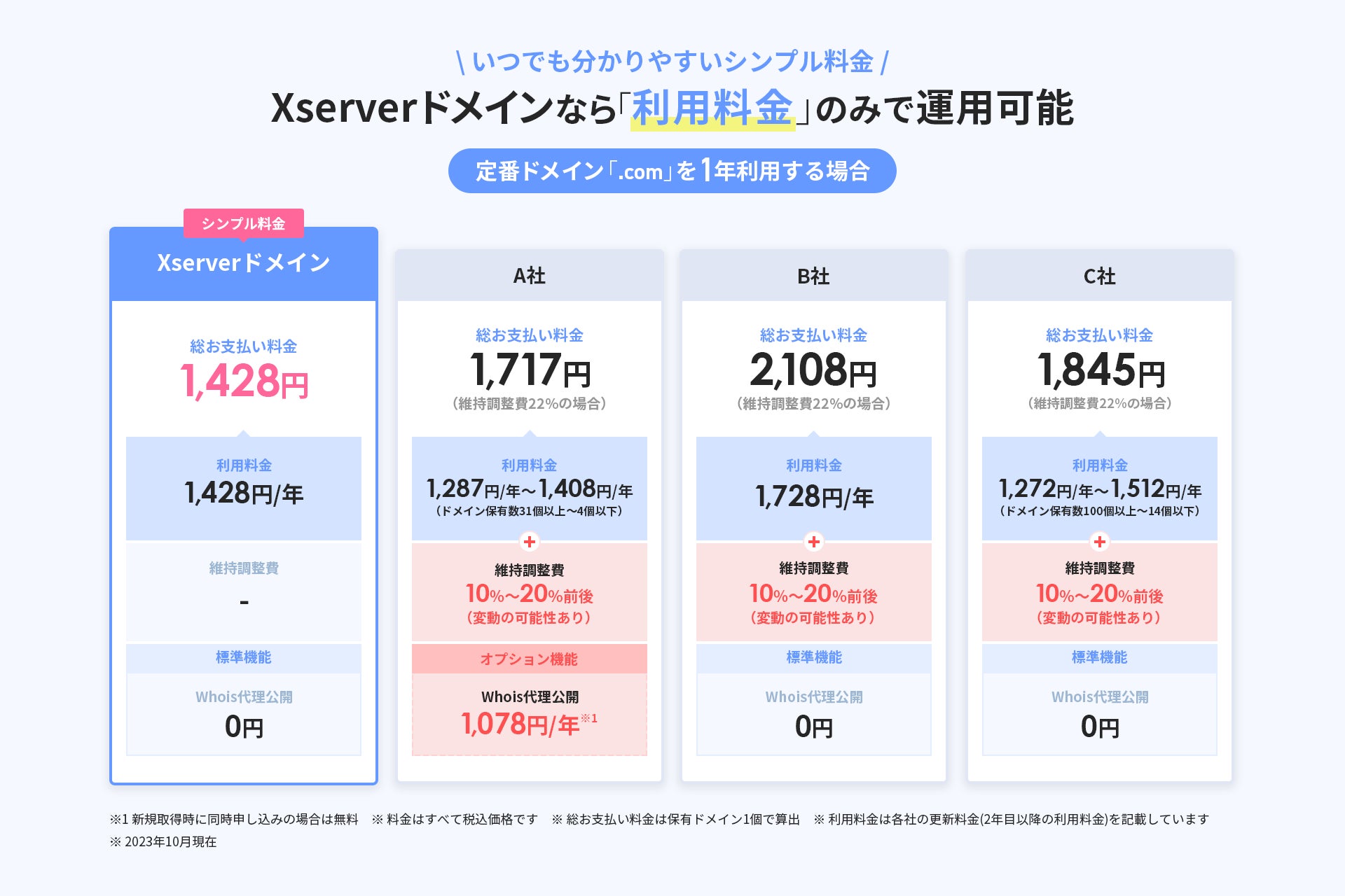 このたび『Xserverドメイン』は、お客様に安心してご利用いただくために「シンプル料金宣言」を発表しました。