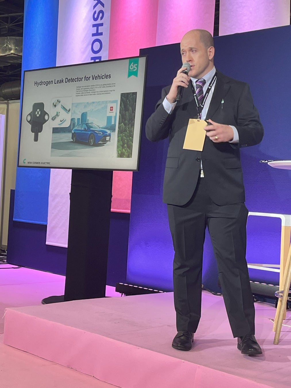 3回目の出展となる今回は初めてワークショップに参加し、新コスモス電機の水素検知技術をご紹介しました。