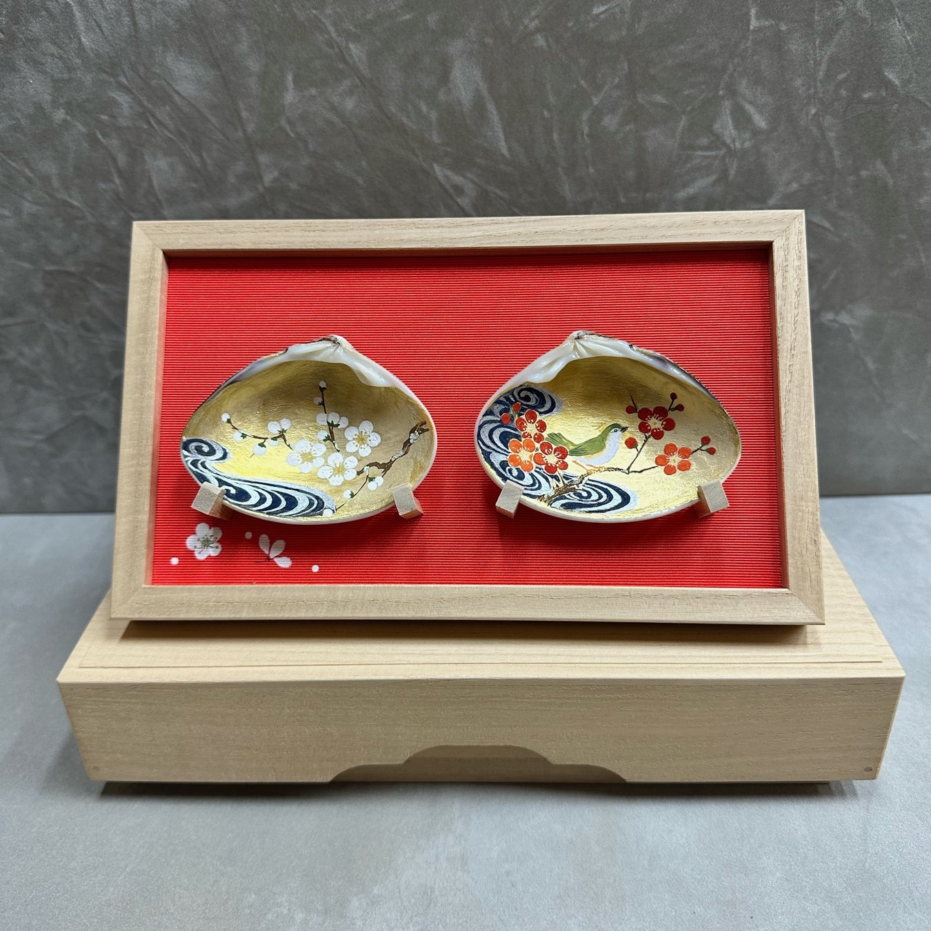 一対の貝殻の両面に花や歌などを書いて左右に分けて置き、絵柄を合わせて取る遊びが楽しまれていました。