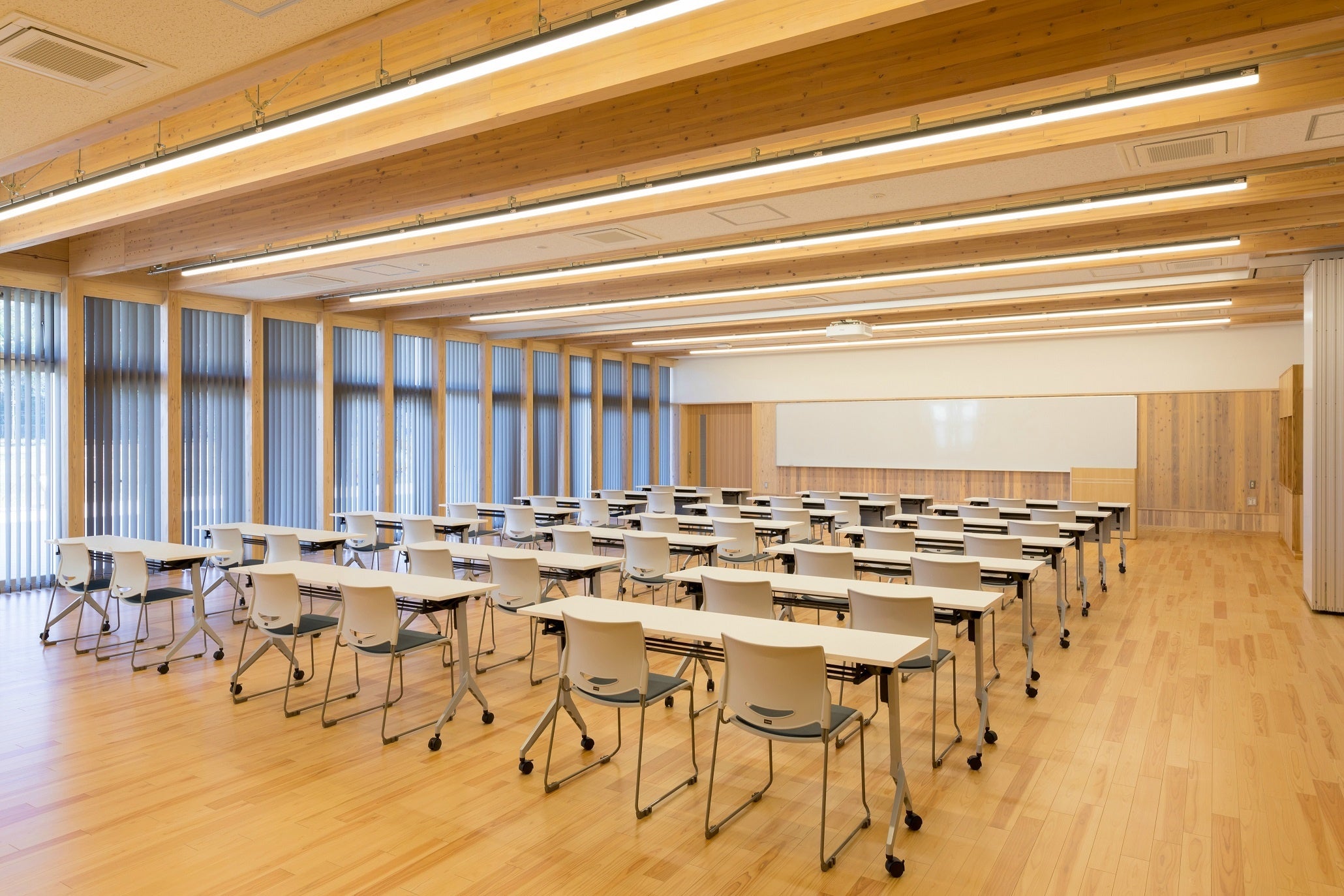 ①ガイダンス棟 (木造平屋建て、建築面積:約 720㎡)