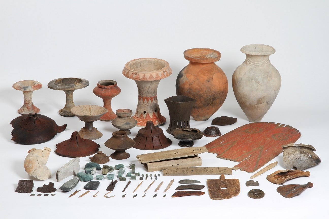 令和元年には、土器、石器、鉄器、木器、骨角器など様々な出土品1353点が国の重要文化財に指定されました。令和6年3月24日に公開がはじまる展示施設で、重要文化財に指定された出土品をご覧いただけます。