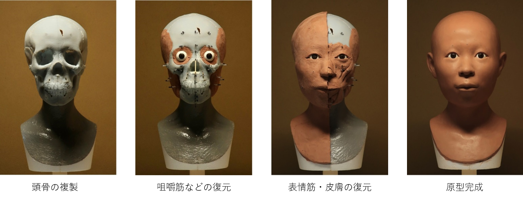 2022年4月から2024年3月に渡り、国立科学博物館制作協力( DNA分析・復顔監修)のもと復顔像を製作。核DNAの分析(右図)により、髪が太いことや肌の色調がやや濃いことをはじめとしたさまざまな特徴が判明し、復顔像に反映しています。