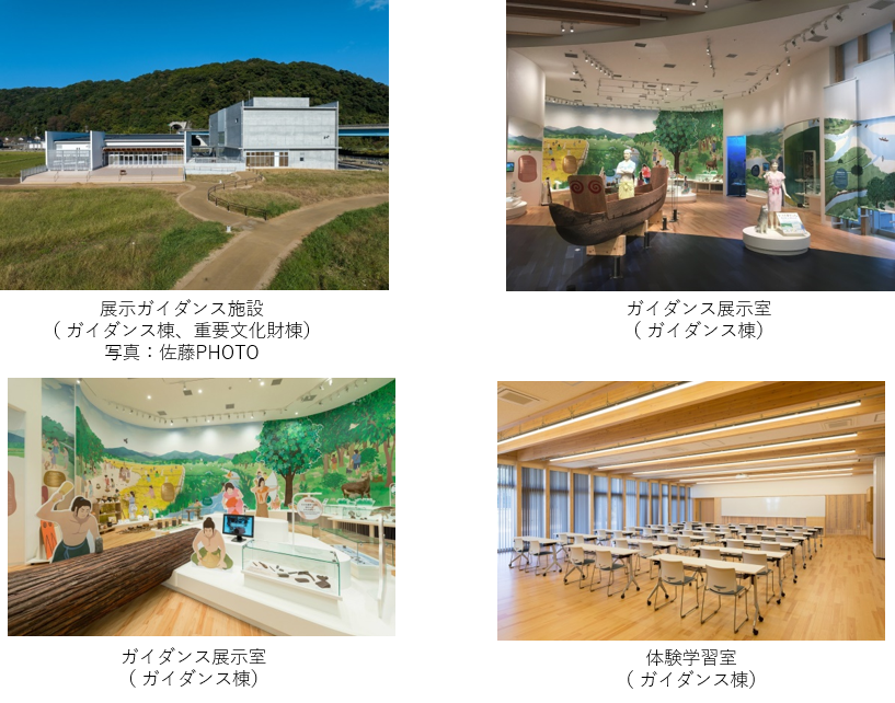 体験学習施設などを備えたガイダンス棟と、令和元年に国の重要文化財に指定された出土品を収蔵・展示するための重要文化財棟の2棟があります。