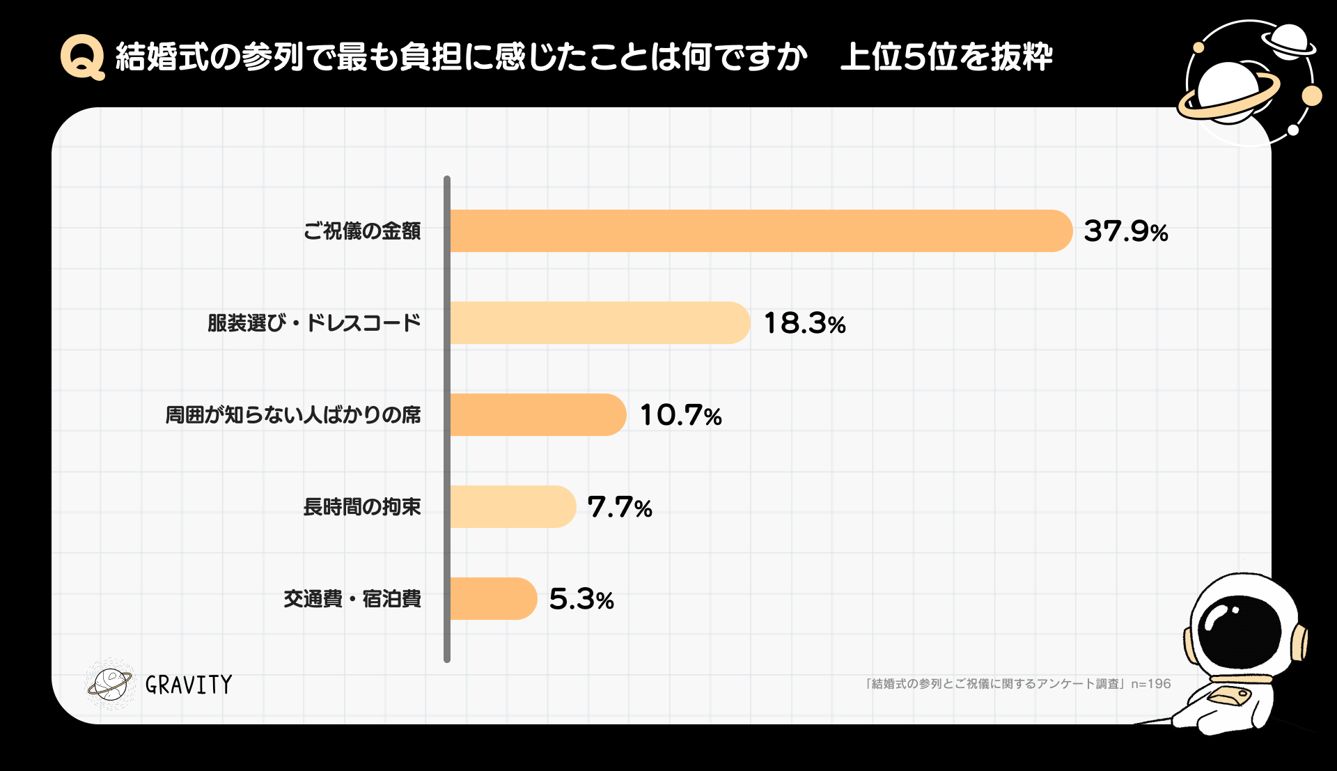 最も負担に感じること1位は「ご祝儀の金額」。