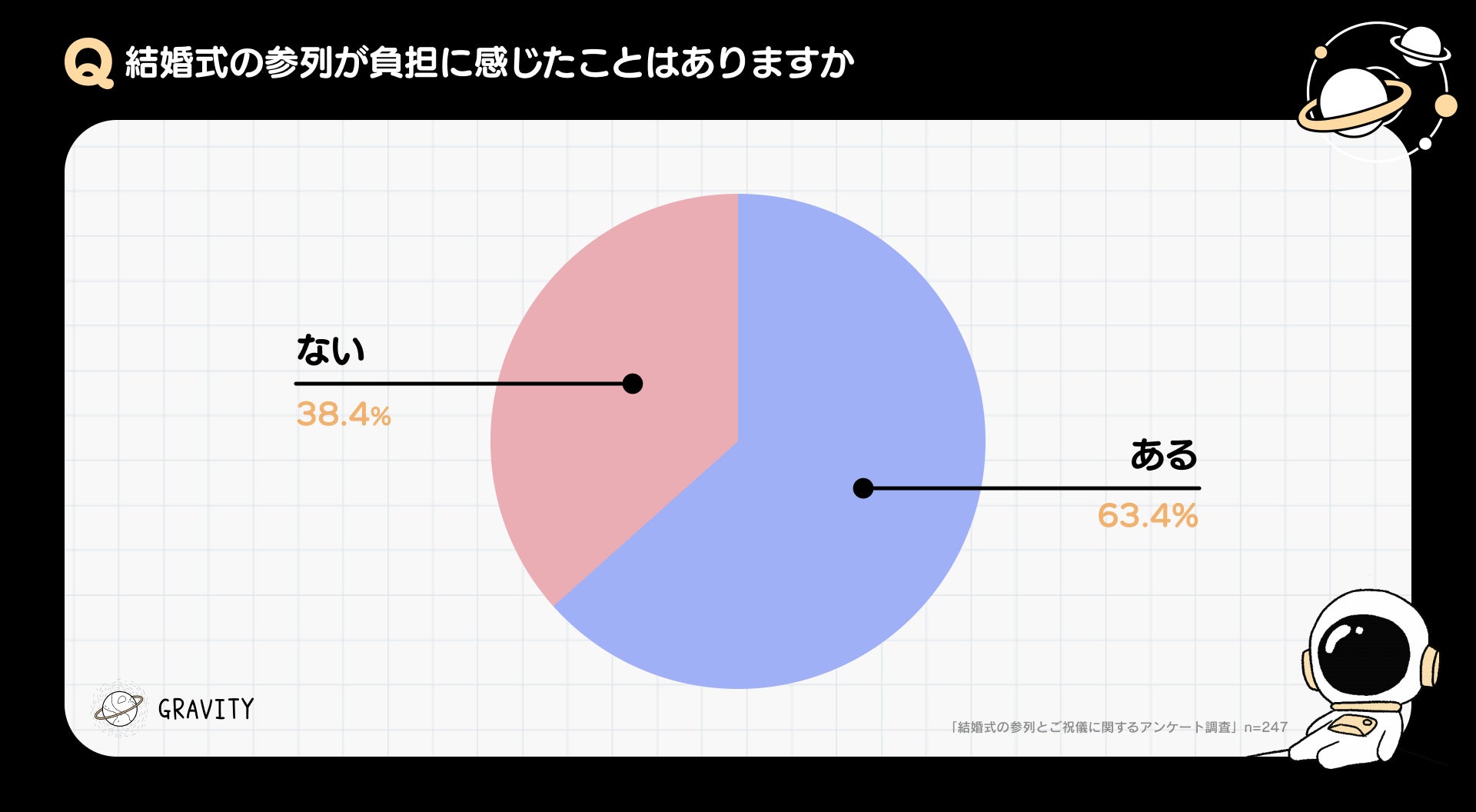結婚式の参列が負担に感じたことが「ある」と回答した人が63.4%。