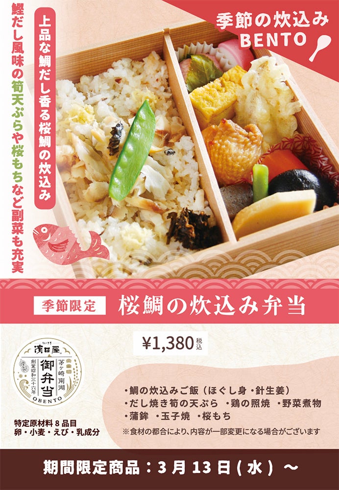 ~春のおめでたい弁当新登場、「濱田屋の桜鯛の炊込み弁当」~3月13日(水)より【ちがさき濱田屋】全店舗にて発売!