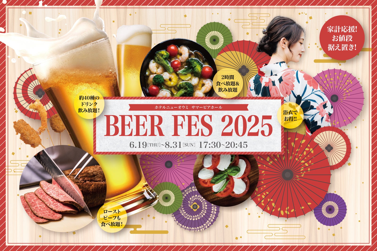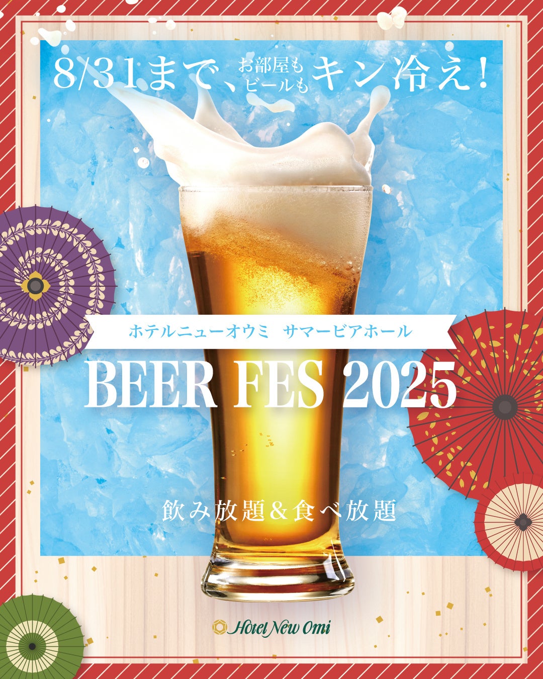 夏のお出かけに!【お得な前売り券 8/24(日)まで販売延長】浴衣映えも叶う!ホテルニューオウミのサマービアホール「BEER FES 2025」 ローストビーフ食べ放題&40種以上飲み放題!好評開催中