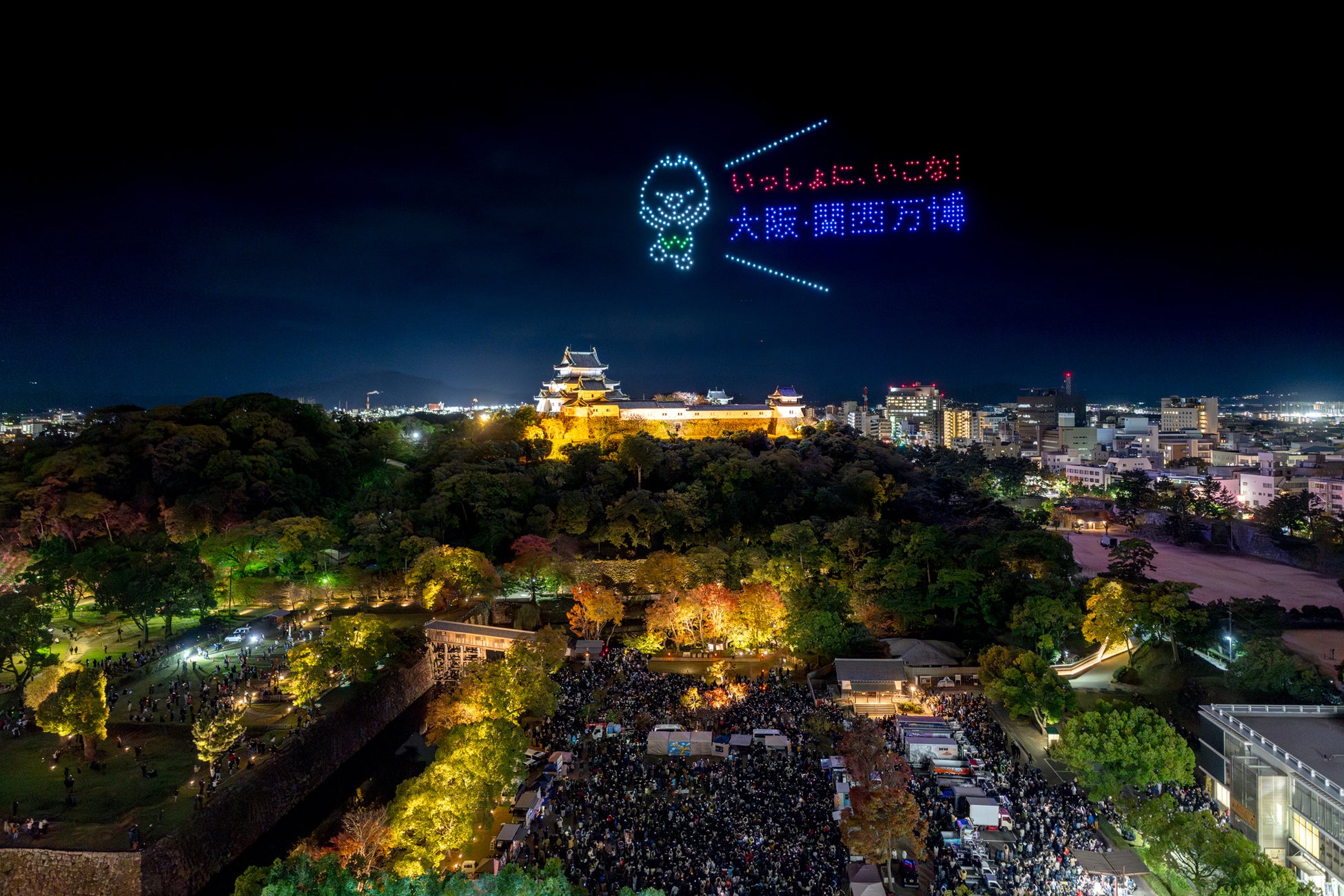 和歌山城とドローンショーコラボ!夜の和歌山城公園を光で彩る「和歌山城〜光の回廊〜」開幕記念イベントで和歌山県内最大規模となる400機ドローンショーを開催