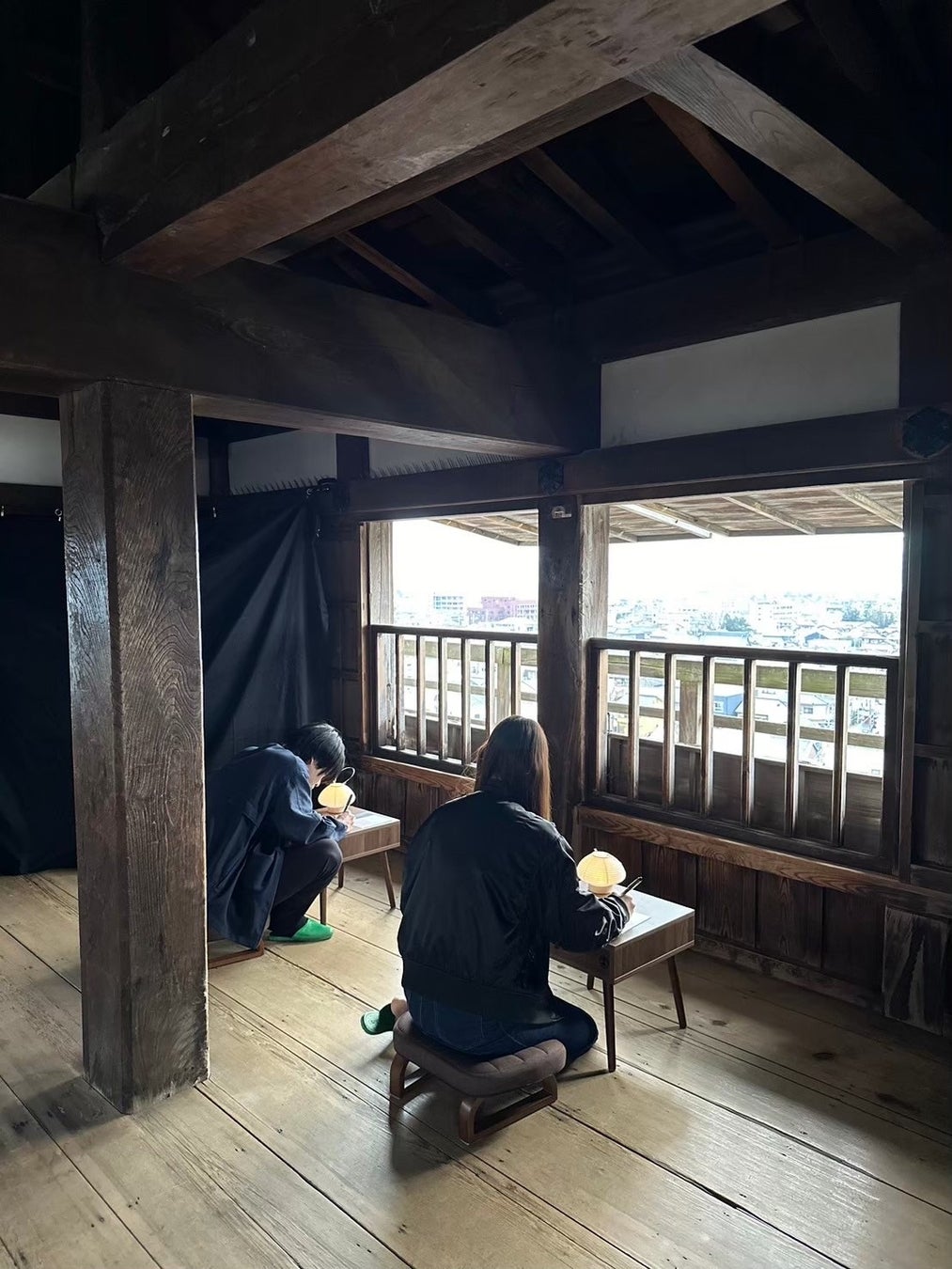 このプランでは、奇跡の修復城「丸岡城」を特別に貸し切り、夕景の天守最上階で、家族や大切な人を思い浮かべて⼀筆したためる特別な体験ができます。