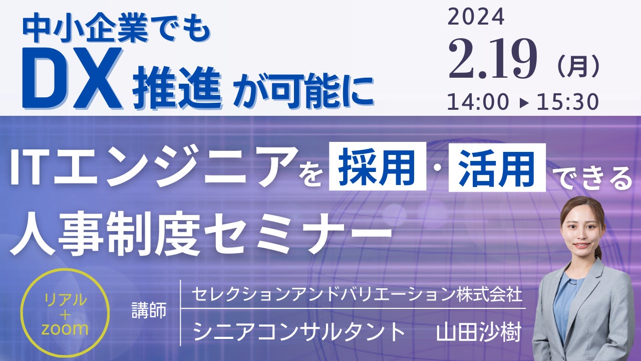 【中小企業でもDX推進が可能に】ITエンジニアを採用・活用できる人事制度セミナー【2月19日(月)開催セミナー】