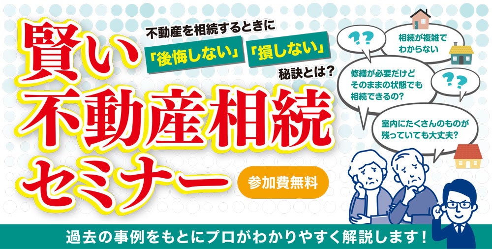 不動産を相続するときに「後悔しない」「損しない」秘訣を学べるセミナー。過去の事例をもとに不動産のプロが分かりやすく解説します。