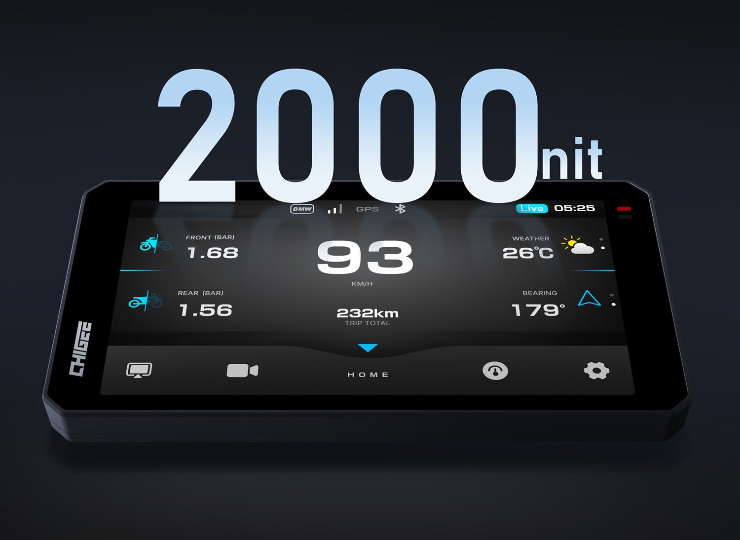 ▼6インチ大型ディスプレイ(最大輝度2000nit):強い日差しの下でも鮮明表示