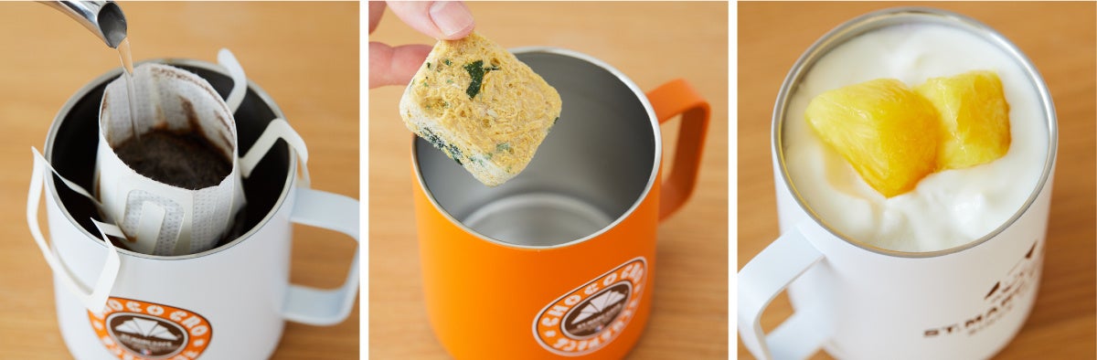 25周年を迎え、よりお客様にサンマルクカフェを身近に感じていただき、さらに楽しんでいただきたいという想いから、サンマルクカフェとしては初となるマグタンブラーを発売いたします。店内で使用しているマグカップのデザインをモチーフに、シンプルながらもサンマルクカフェらしく、カップの真正面にはロゴマークをデザインし、裏側にはサンマルクカフェオリジナルの犬のキャラクターである「チョコクロ」をデザインし、可愛らしく仕上げました。今回25周年を記念して、サンマルクカフェカラーのオレンジ色のマグタンブラーも同時に作成し、ホワイトとオレンジの2種類販売いたします。また、真空断熱構造のため、飲み頃の温度を長い時間お楽しみいただくこともでき、タンブラーの外側は結露しにくい、様々なシーンにぴったりです。大きめのサイズとなっているため、コーヒーなどのドリンク以外にも、スープやデザートのカップとしてもご活用いただけます。