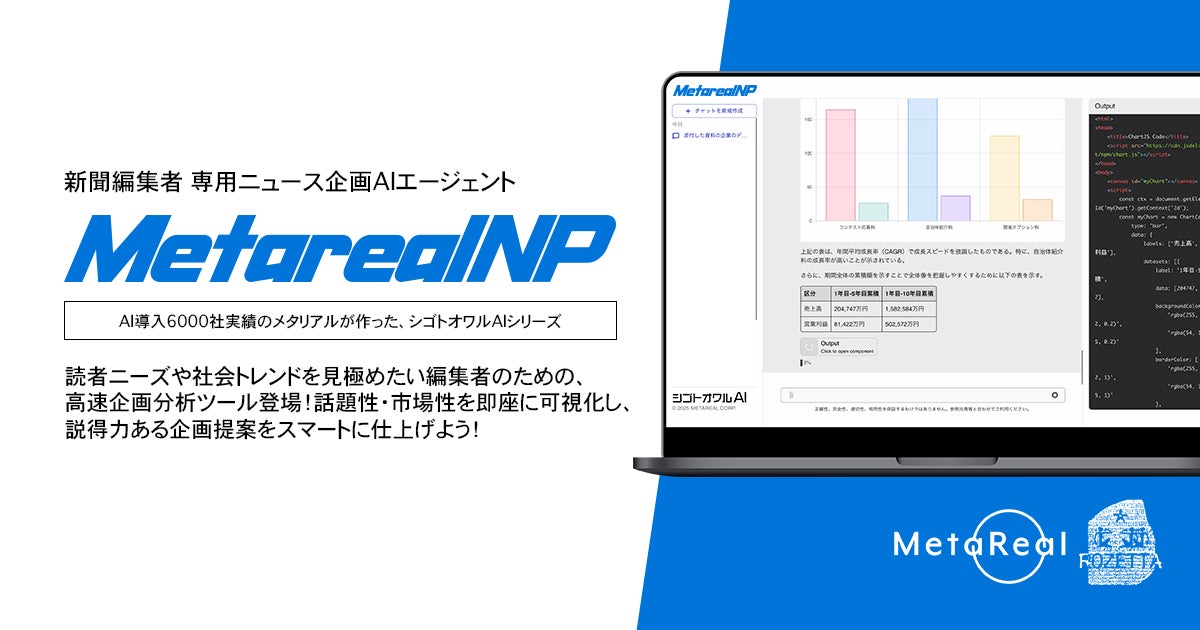 業種特化の専門AI 開発・運営を行う株式会社メタリアル(本社:東京都千代田区、代表取締役:五石順一)は、新聞編集者専用ニュース企画AIエージェントとして、「Metareal ニュースペーパー(以下、