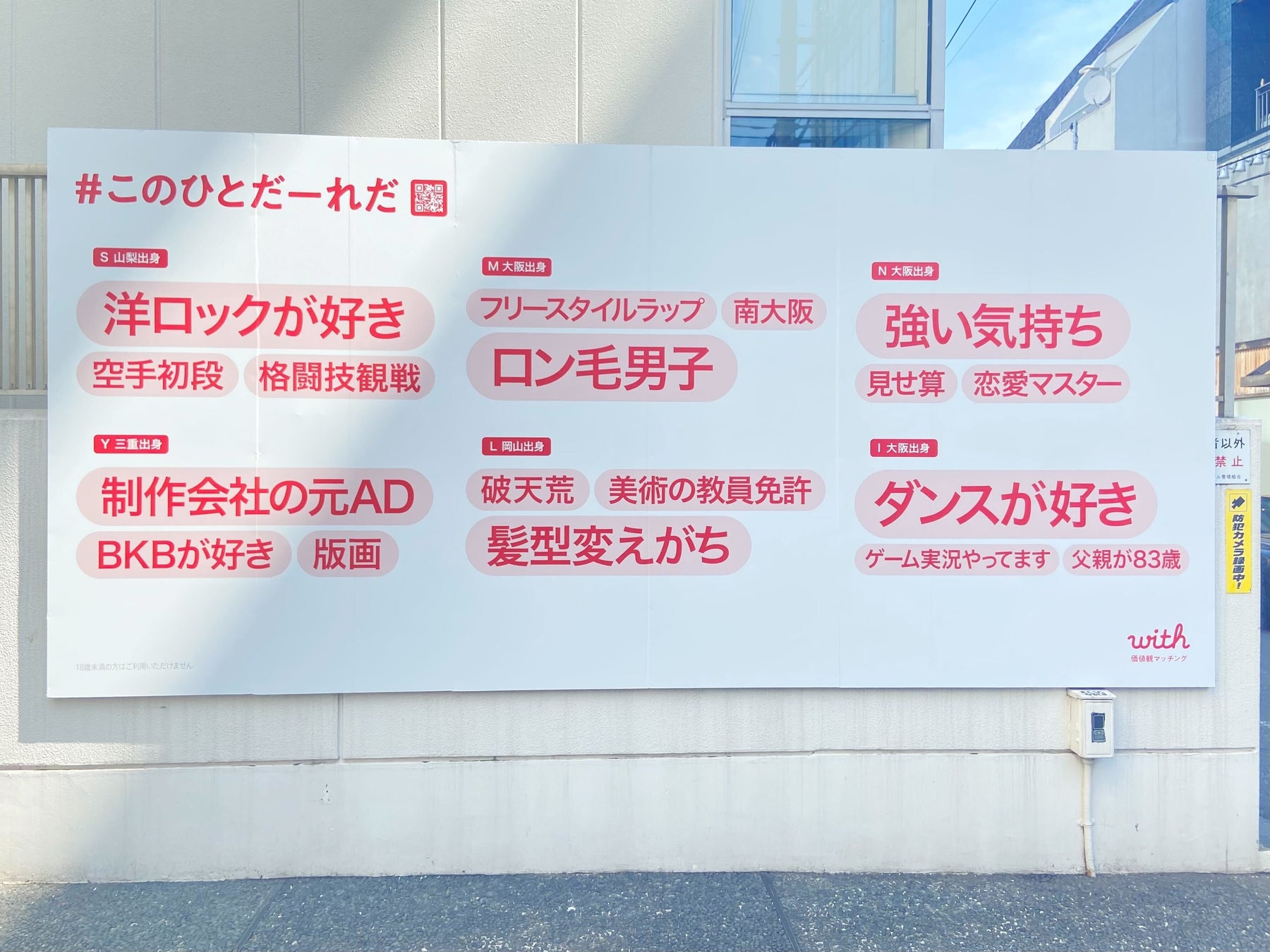 「価値観がわかる。出会いがかわる。」キャンペーンのアンバサダーが誰なのかをX上で予想していただく「#このひとだーれだ」チャレンジを実施します。そのヒントとして、東京渋谷エリアの屋外広告のほか、JR西日本 大阪環状線やOsaka Metro 御堂筋線などの交通広告、デジタル広告にアンバサダーを務める芸人6人の価値観が表現されたグラフィックや映像が掲出されます。もしかすると、あなたの推しがアンバサダーに起用されているかもしれません!