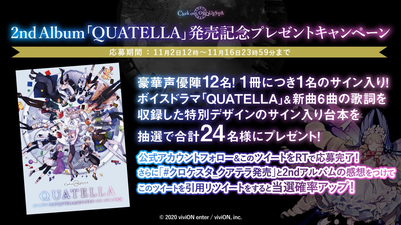 本プロジェクトのアルバム第2弾「Clock over ORQUESTA return match BATTLE all-in 【QUATELLA】」を本日、2022年11月2日に発売いたしました。