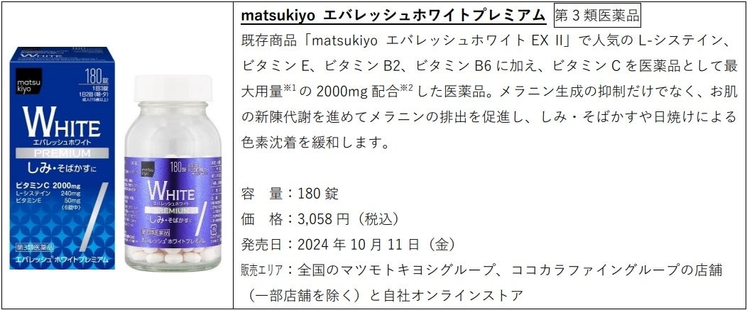 医薬品最大用量※1ビタミンC 2000mg※2配合 「matsukiyo エバレッシュホワイトプレミアム」10月11日より販売開始
