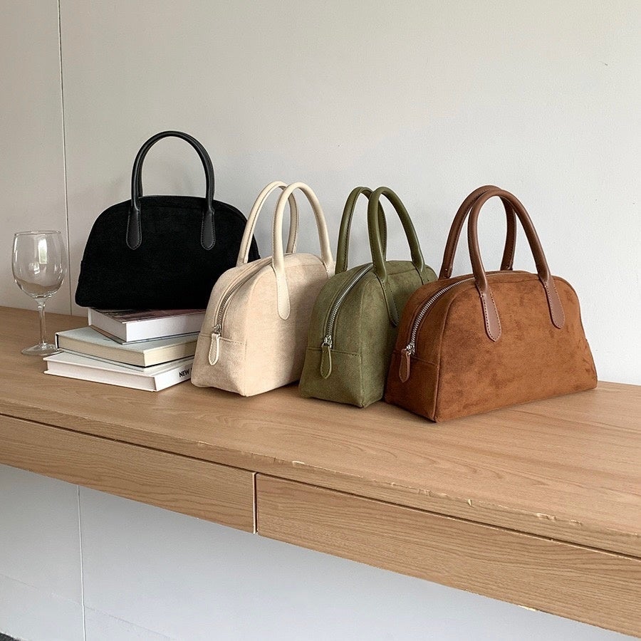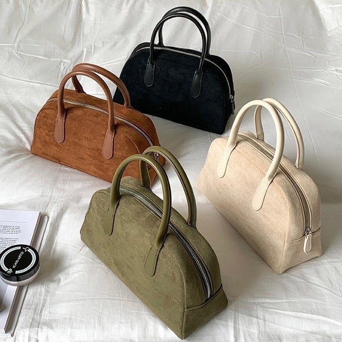 特徴的な台形のシルエットが美しいボストンバッグです。スエードのような質感が秋冬コーデに良く合います。オンでもオフでも使いやすいシンプルなデザインが魅力です。