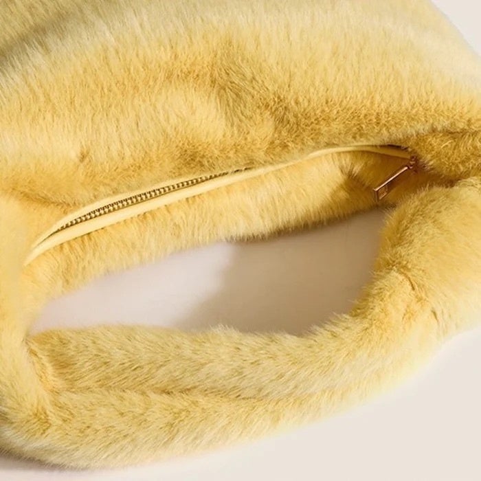 フェイクファー素材のふわふわハンドバッグです。シンプルな四角いシルエットが使いやすく、持ち手はぎゅっと握れる気持ちよさと安心感があります。差し色にもぴったりのカラフルなバリエーションはコーデのアクセントにもおすすめです。