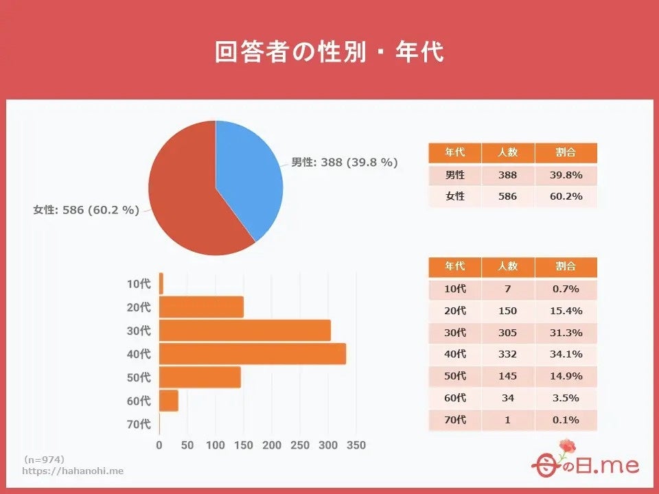 母の日.me調べ。10~70代の男女(計974名)を対象にした実態調査アンケート。