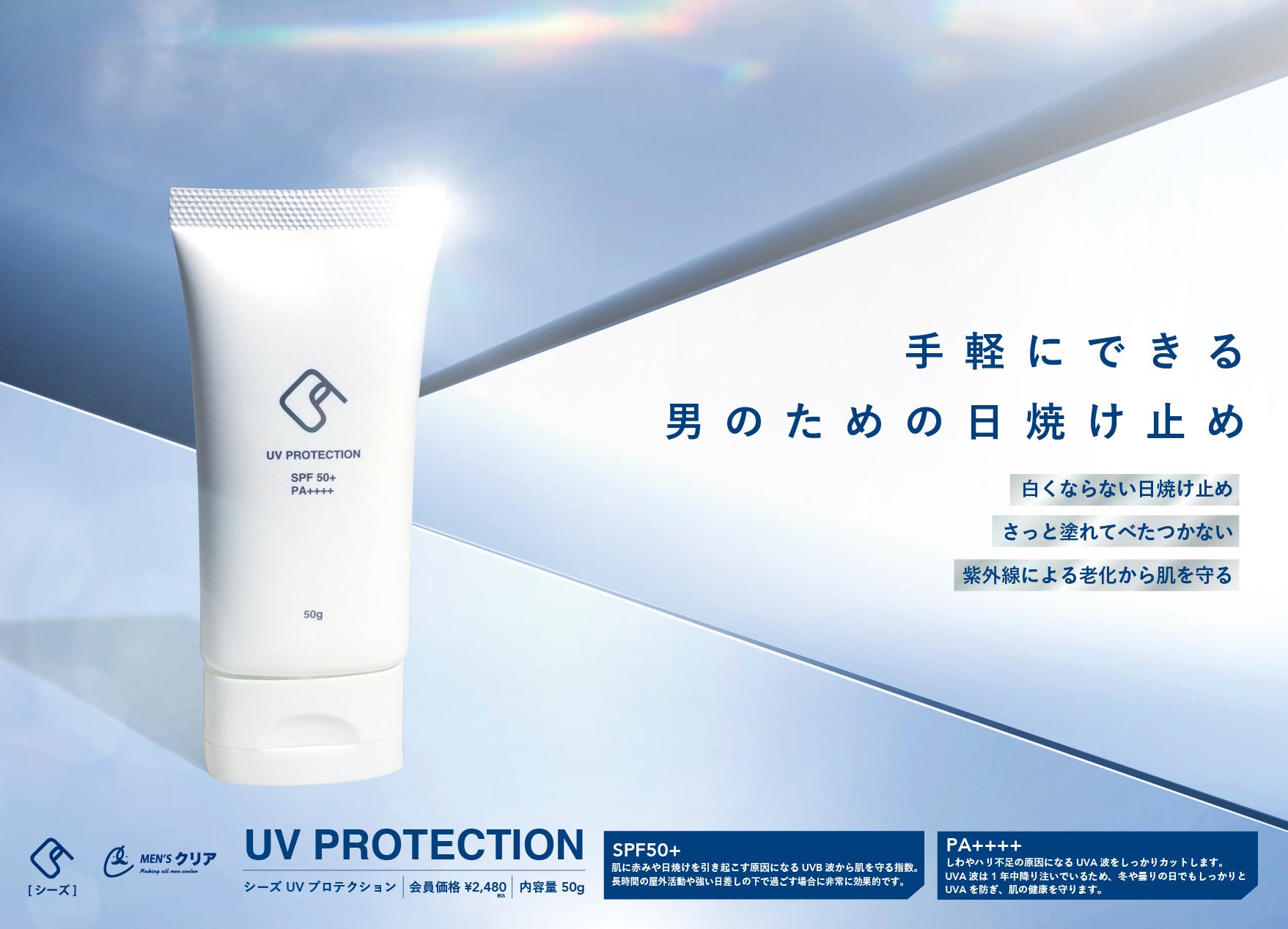 株式会社クリア(本社:東京都渋谷区、代表取締役社長:勝沼 潤)は、メンズクリアが監修するスキンケアブランド「C’s(シーズ)」より「UVプロテクション(日焼け止めクリーム)」を販売いたします。