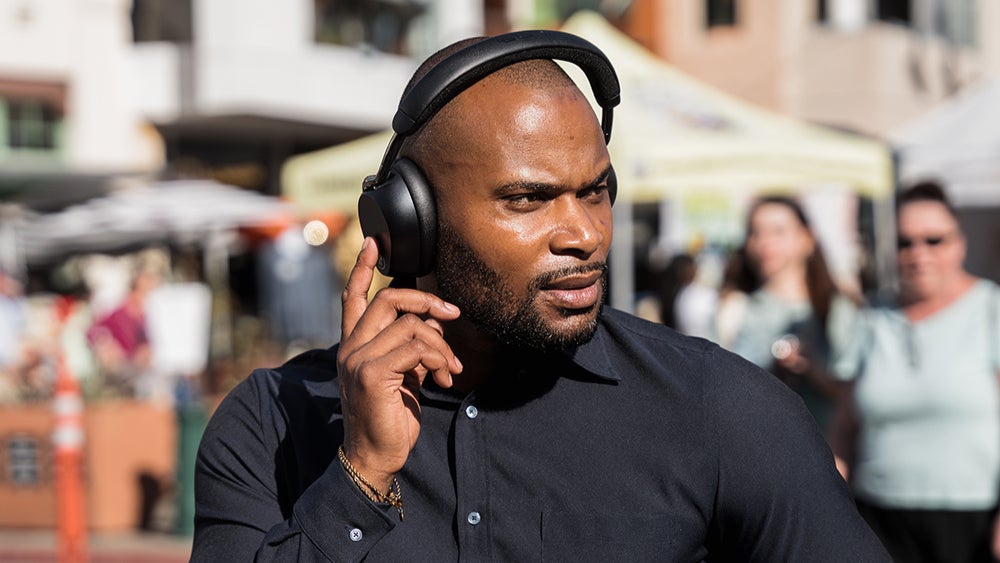 環境に応じてノイズを調整し、常に最適なリスニング空間を保つことができるAdaptive ANC。周囲の音を取り入れたいときは、右側のイヤーカップに手のひらを軽く当てるだけで、一時的に外部音取り込みモードに切り替わり、手を離すと自動でノイズキャンセリングが再開します。