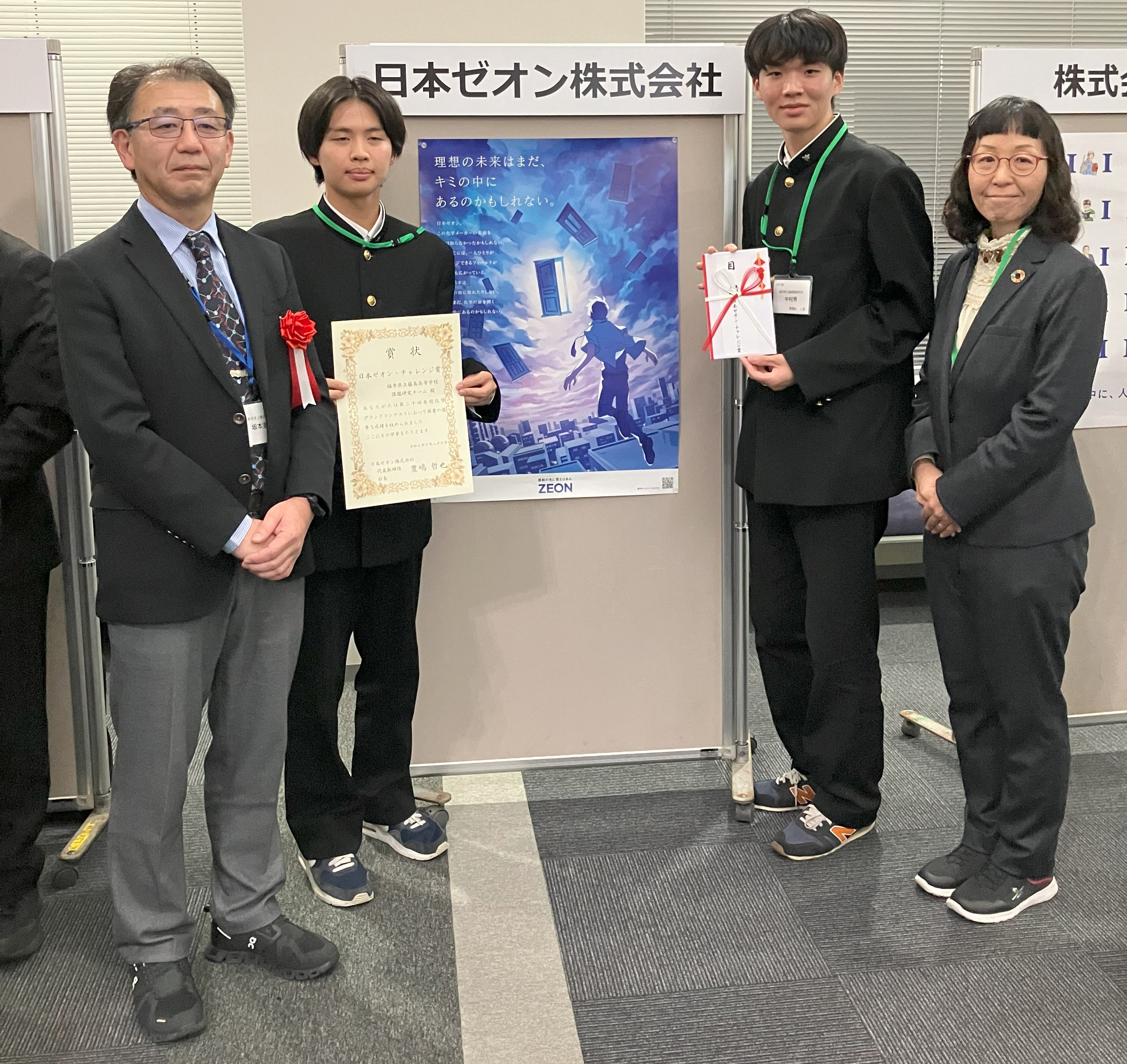 日本ゼオン株式会社(本社:東京都千代田区、代表取締役社長:豊嶋 哲也 以下、ゼオン)は、 昨年に引き続き「第20回高校化学グランドコンテスト(主催:芝浦工業大学)」に特別協賛しました。同コンテストは、高校生および高等専門学校生(3年生以下)が行っている「学習研究活動」を支援し、高校生自らが自主的な探究活動を楽しみながら科学的な創造力を培い、将来科学分野で活躍できる人材の育成を目的とし、2004年から開催されています。 ゼオンは同コンテストの趣旨に賛同して2023年より特別協賛しており、ゼオン独自の視点で選考する「日本ゼオン・チャレンジ賞」は、福井県立藤島高等学校に贈られました。