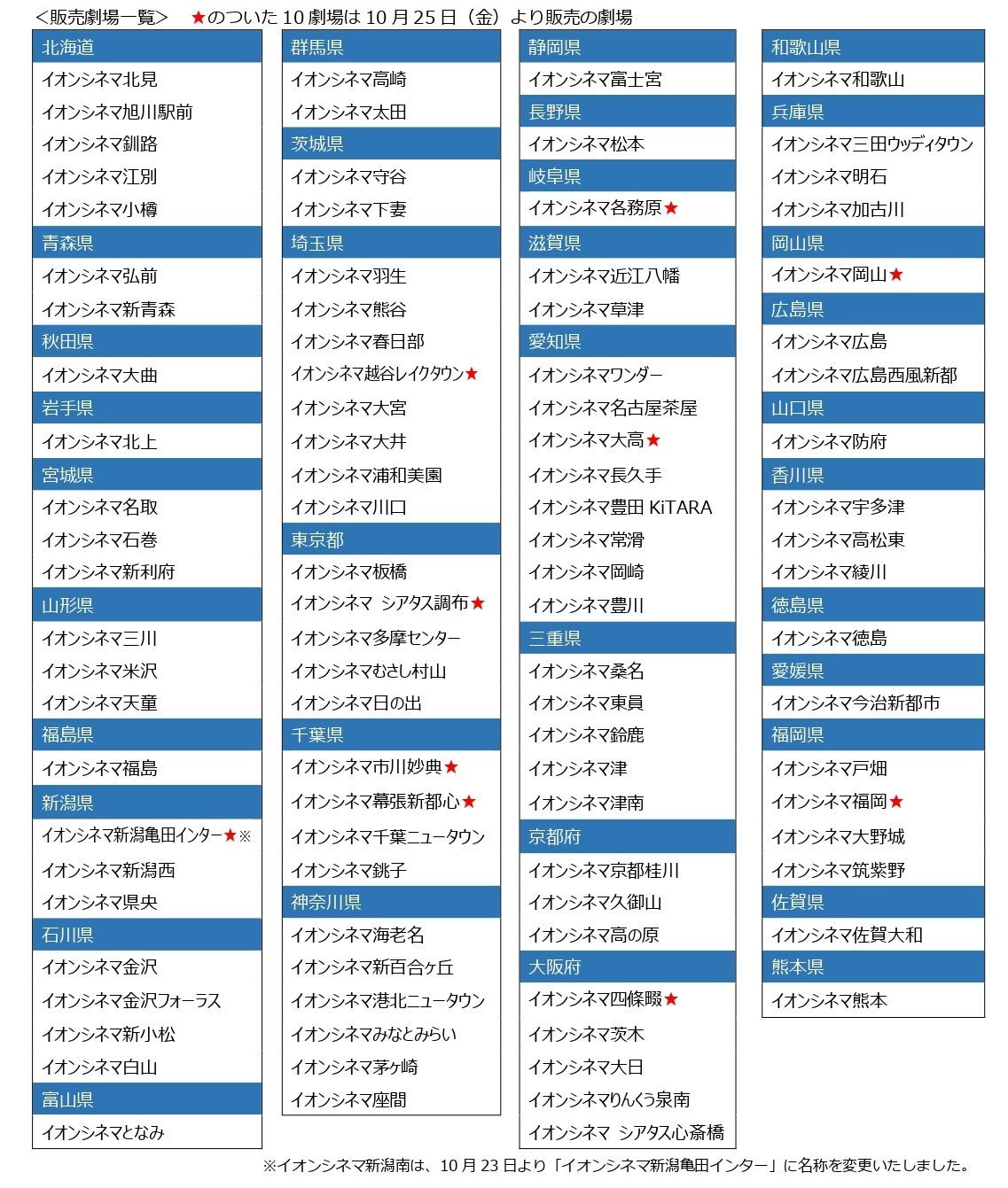 ※販売劇場は、別紙<販売劇場一覧>を参照。