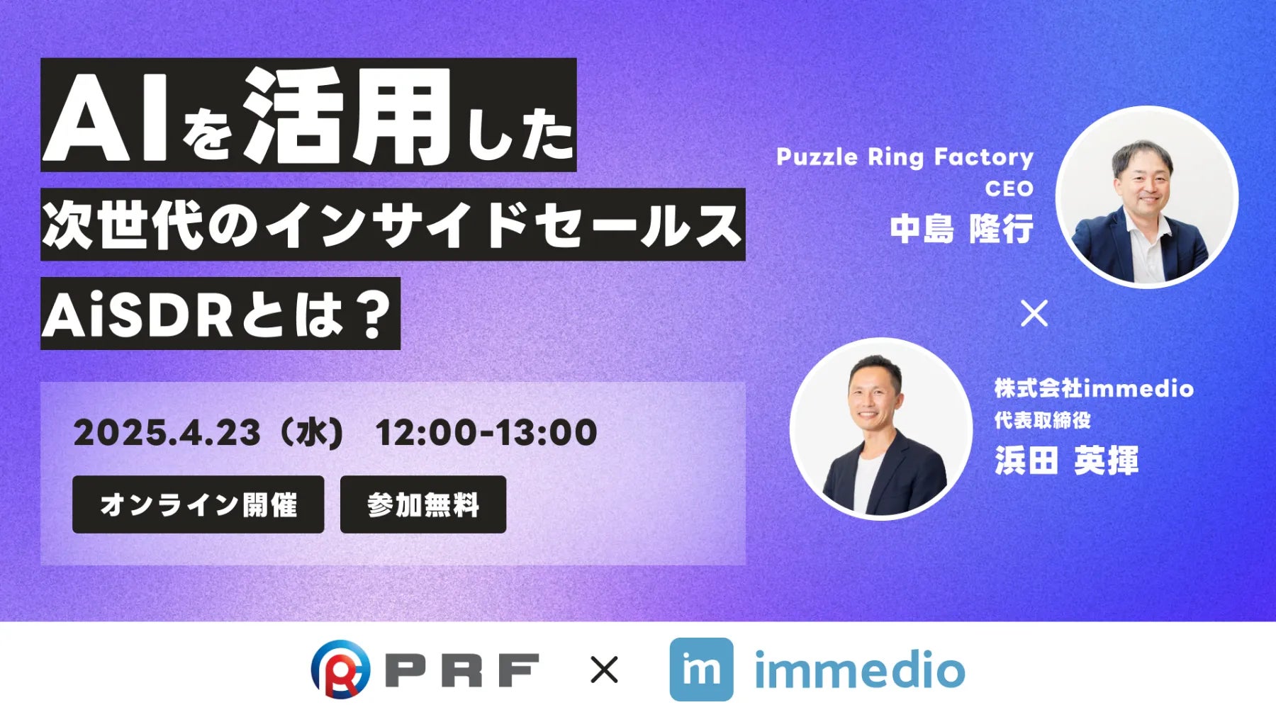 4/23 に開催される「AIを活用した次世代のインサイドセールス。AI-SDRとは?」に代表の浜田が登壇します。