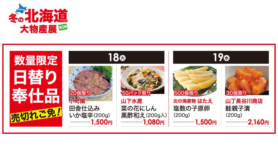 第2弾は新登場グルメが続々!週末は営業時間を20時まで延長!冬の北海道大物産展は屋上でも同時開催!屋上イートインとともに北海道の“おいしい”を堪能できる後半ウィーク。
