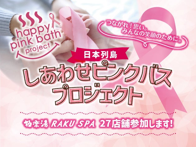 株式会社極楽湯(本社:東京都千代⽥区、代表取締役社長:佐藤 剛史)は、ピンクリボン月間にあわせて行われる「日本列島しあわせピンクバスプロジェクト」への参加を決定しました。2024年10月1日(火)~11月30日(土)の期間中、直営27店舗にて順次、お風呂イベント「しあわせピンクリボンの湯」を開催します。