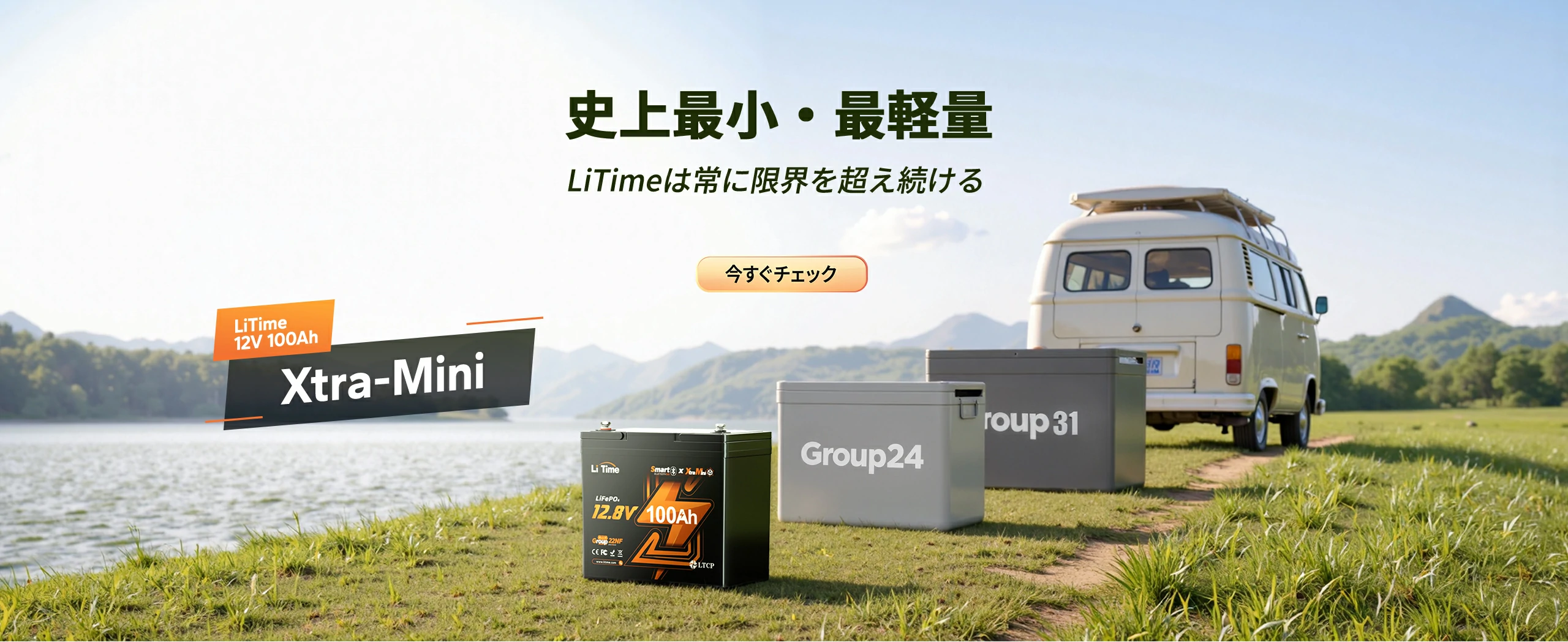 LiTime 12V 100Ah Xtra-Mini Bluetooth付きリン酸鉄リチウムイオンバッテリー