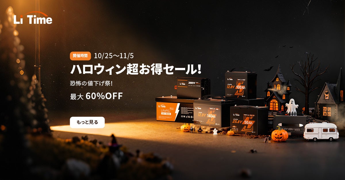 ハロウィンの季節を迎え、エネルギーソリューションを提供するブランドLiTimeは、2025年10月25日(土)に『ハロウィン驚安祭』を公式ストアで開始しました。本キャンペーンは11月5日(水)まで開催し、リン酸鉄リチウムバッテリー、充電器、インバーターなど人気製品を最大60%OFFの特別価格でご提供します。