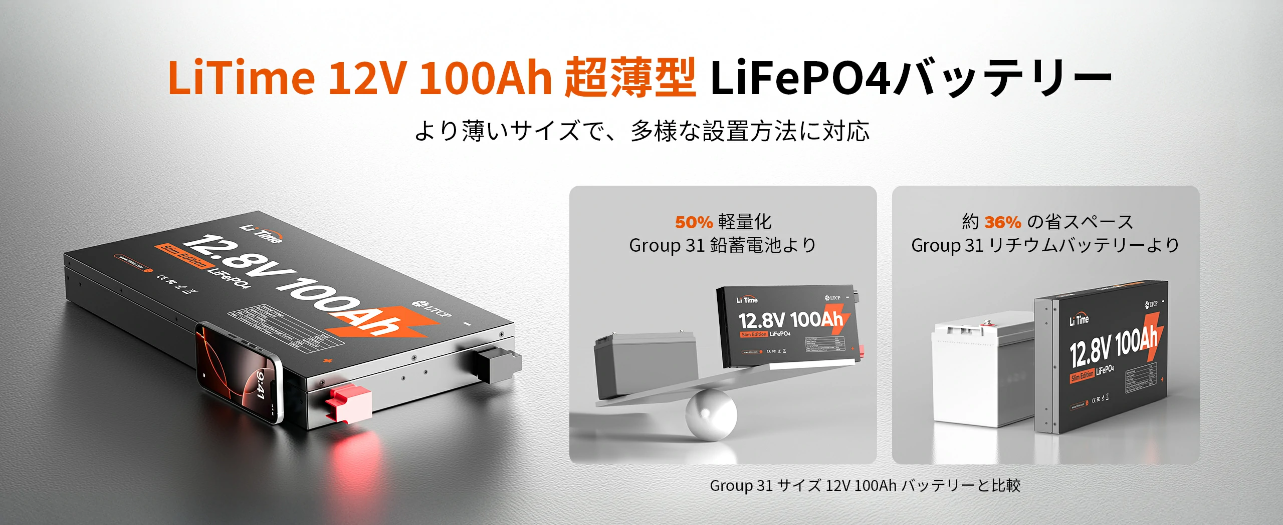 LiTime 12V100Ah 超薄型 リン酸鉄リチウムイオンバッテリー