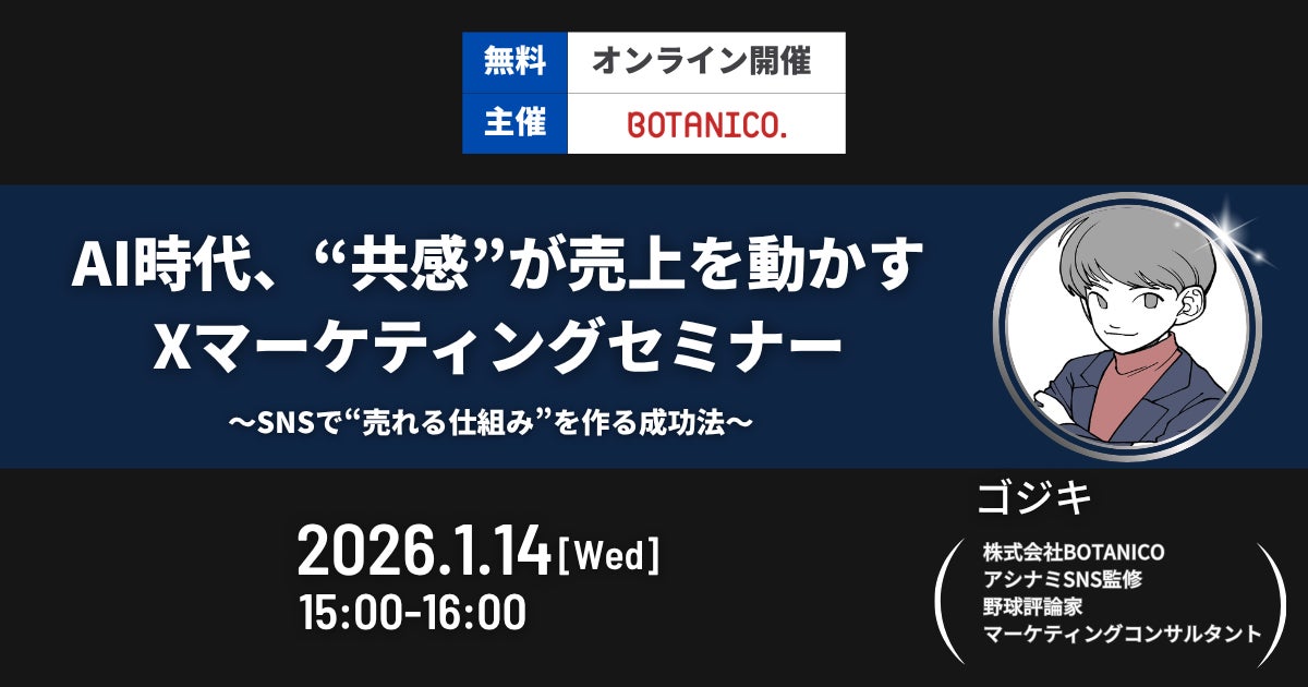 【2026年1月14日(水)開催】AI時代、“共感”が売上を動かすXマーケティングセミナー
