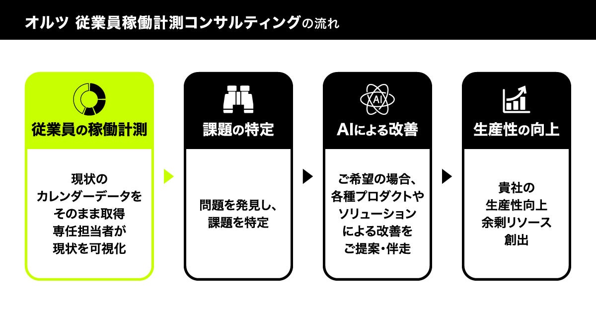 オルツの従業員稼働計測コンサルティングの流れは以下の通りです。